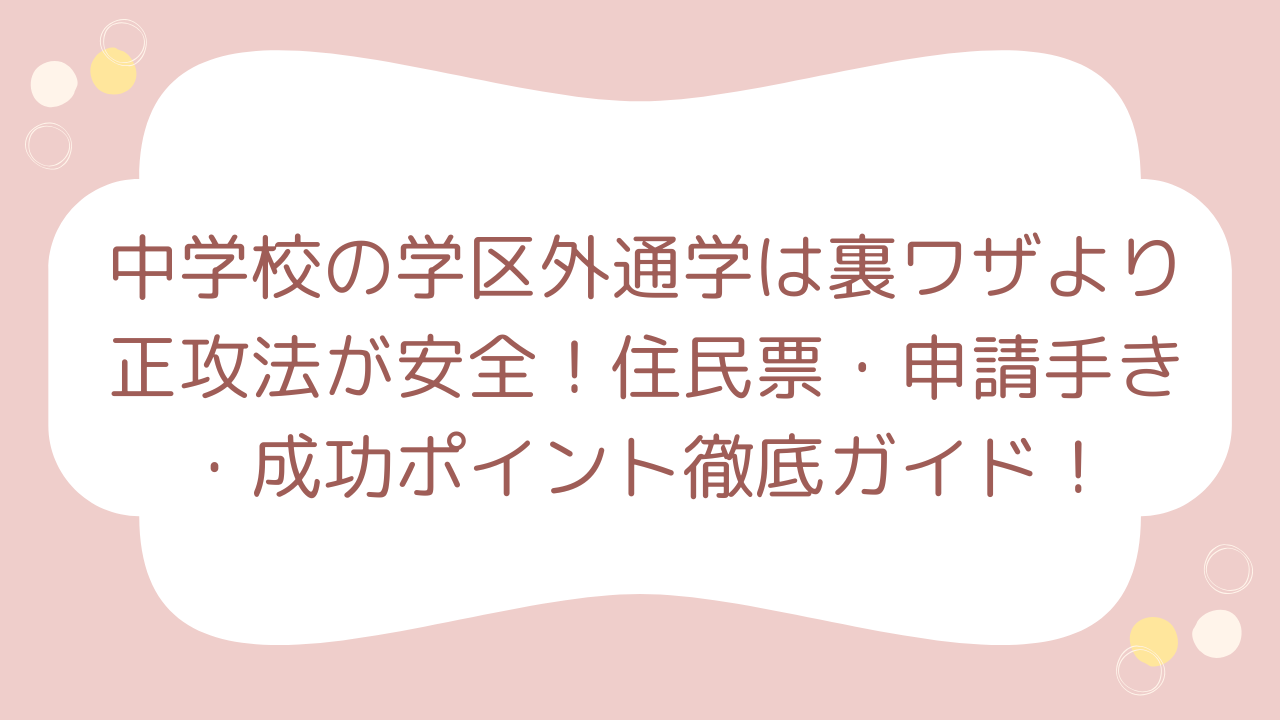 「学区外の中学校に通いたい。でも、裏ワザって本当に使えるの?」「どんな手続きをすれば失敗しないの?」