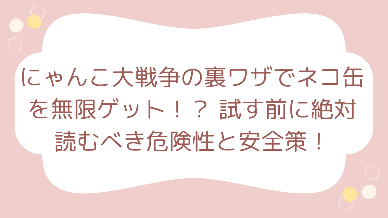 「にゃんこ大戦争でネコ缶を無限に増やす裏ワザがある」――そんな話を耳にして、ワクワクしたことはありませんか?